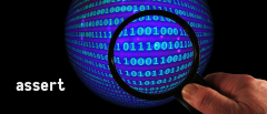 Java assertions. Image of a hand holding a magnifying glass over code with the keyword assert